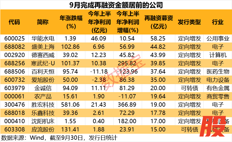 9月份A股再融资完成规模环比增近30% 6家公司募资超35亿元9月份A股再融资完成规模环比增近30% 6家公司募资超35亿元