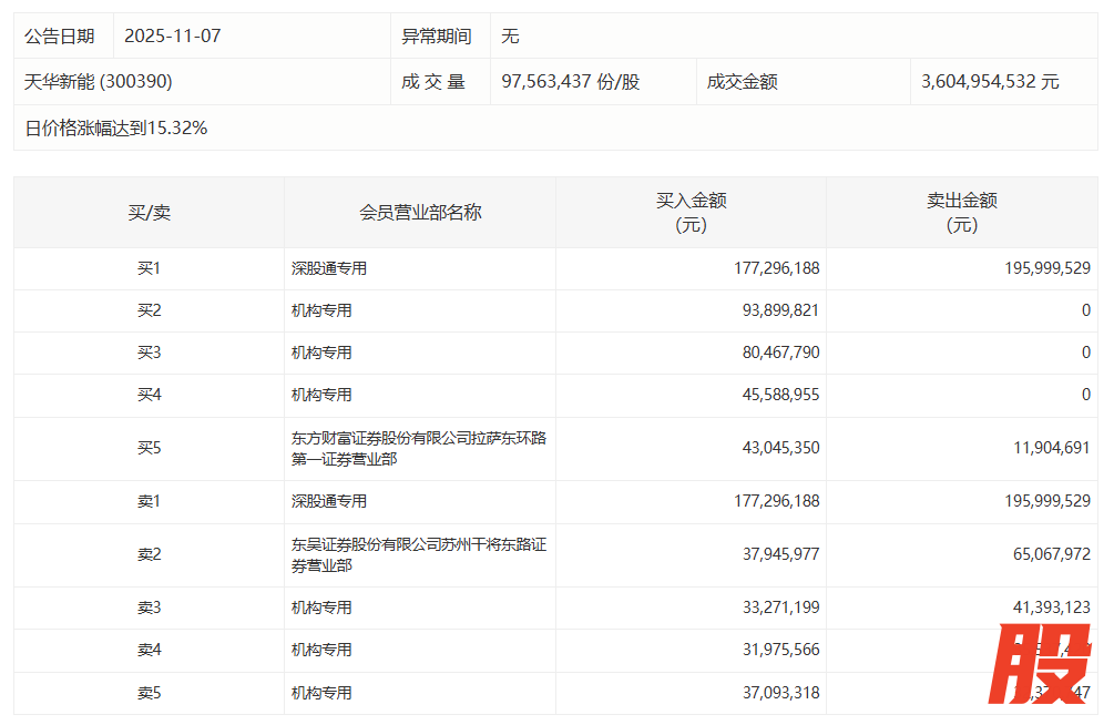 天华新能今日涨15.32%,4家机构专用席位净买入2.25亿元天华新能今日涨15.32%,4家机构专用席位净买入2.25亿元
